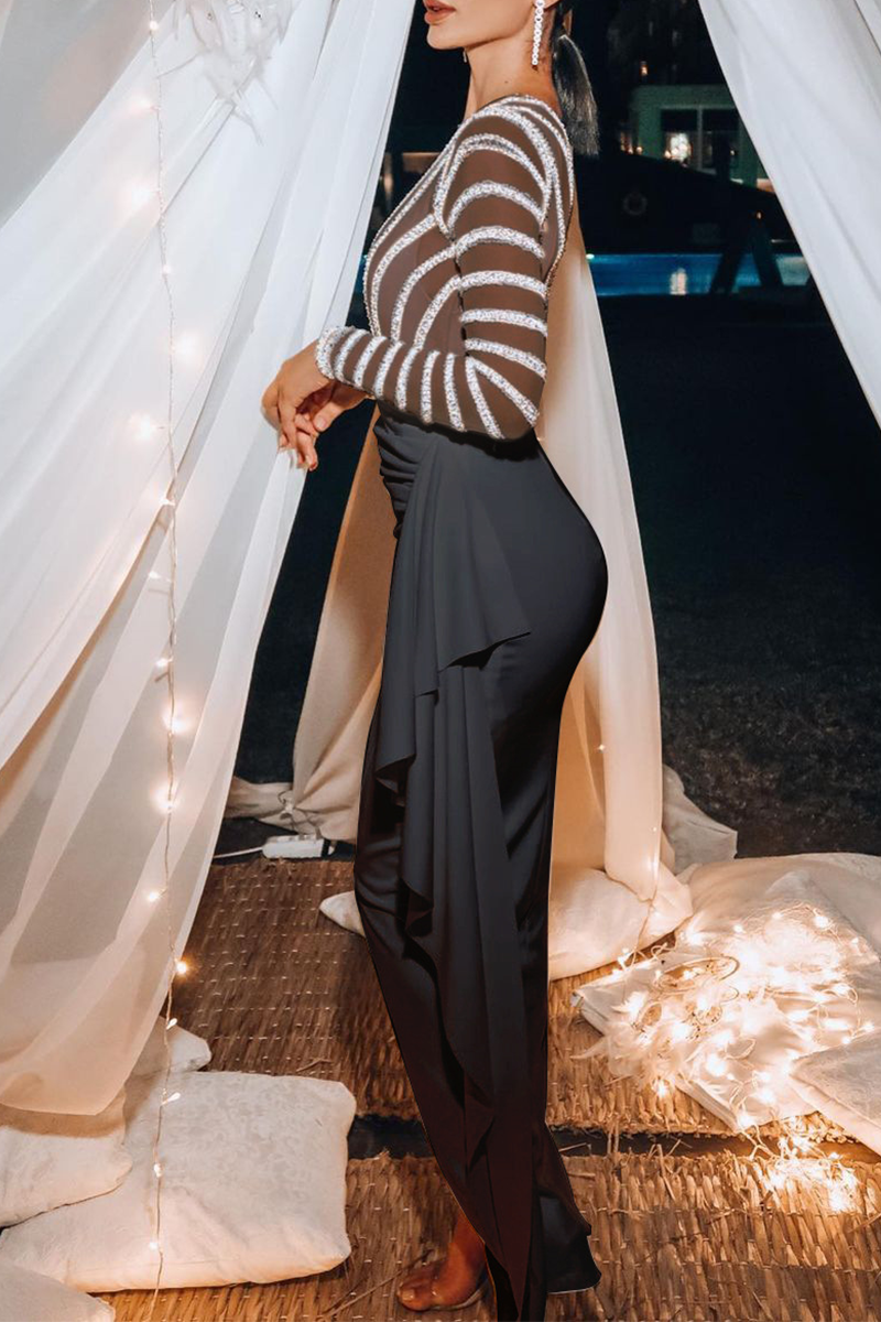 Elegant Solid See-through Asymmetrical O Neck Evening Dress Dresses