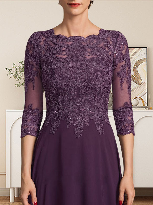A-line Scoop Floor-Length Lace Chiffon Mother of the Bride Dress With Sequins