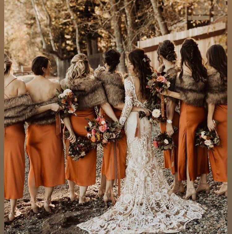Model (172cm) wearing gown custom in #42 orange burnt color?