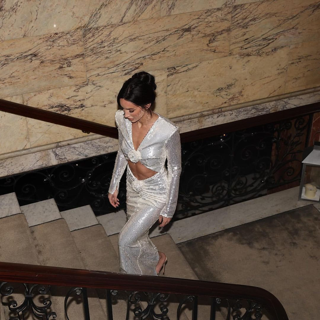 Hollow Out Sequin Deep V Maxi Prom Dress