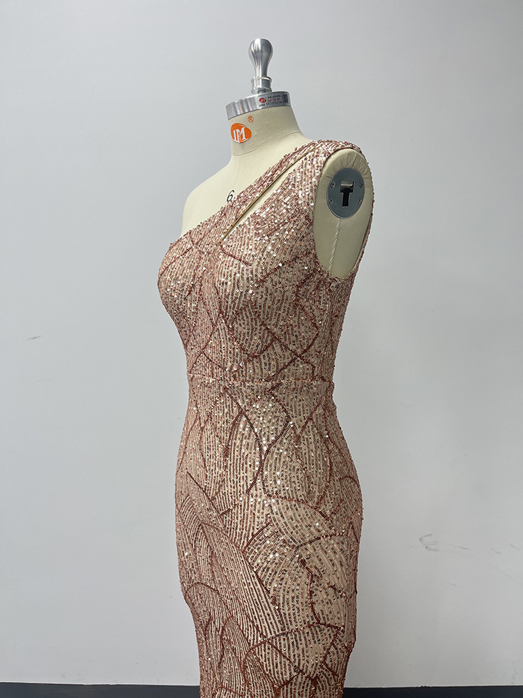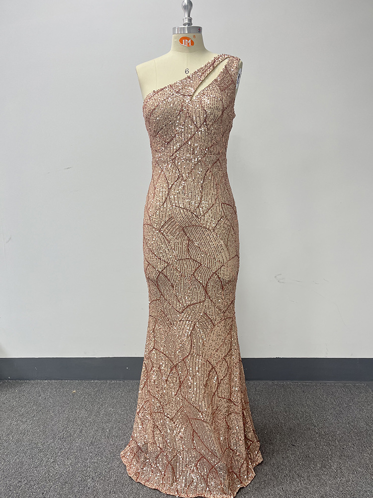 Oblique One Shoulder Evening Dress Sexy Mermaid Women Party Dress Sequined Full Lining Back Zipper Evening Dress